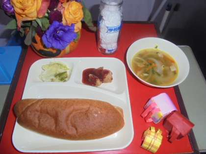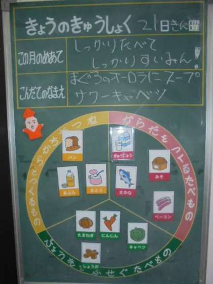 今日の献立は、まぐろのオーロラ煮、スープ、サワーキャベツ、パン、牛乳です。