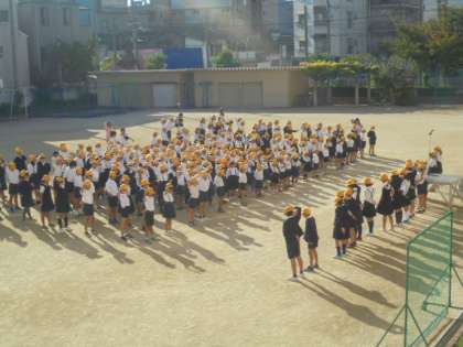 今日も全校朝会の前に、姿勢体操をしました。健康委員会の皆さんが、前で見本を見せてくれました。さわやかな秋晴れの日、気持ちの良い朝のスタートです。