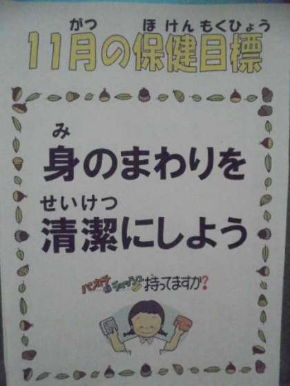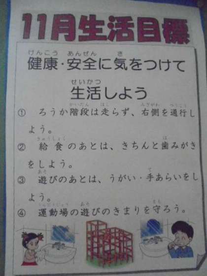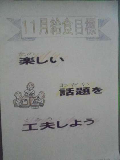 今月の生活目標、保健目標、給食目標です。(写真左から)