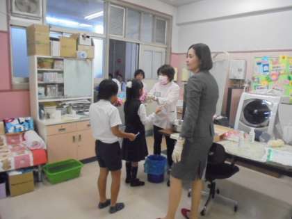 今日は、学校歯科校医の太田先生と大阪市教育員会より歯科衛生士がお越しくださり、、4年生に歯みがきの大切さを指導してくださった後、保健室でフッ化物を塗布していただきました。