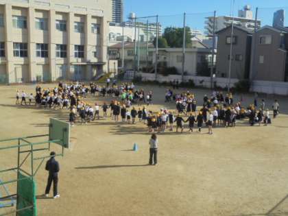 今朝の児童集会は、子どもたちが全員で「だるまさんがころんだ」をしました。朝早くから、集会委員の子どもたちと先生方が準備をしてくれました。(写真上)ありがとうございます。たてわりグループで、楽しみました。(写真中、下)