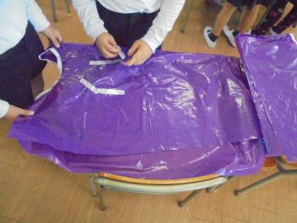 学芸会で使う衣装を作っています。さて、何年生でしょうか?当日をお楽しみに・・・。