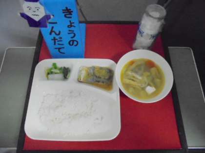 今日の献立は、さごしのおろしじょうゆかけ、けんちん汁、はくさいのおひたし、ごはん、牛乳です。