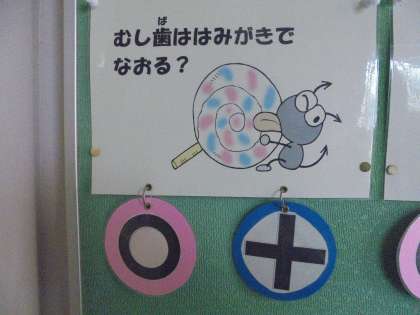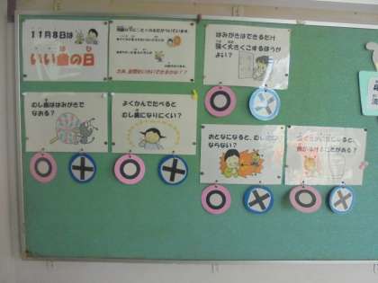 保健室の大久保先生が、保健室前に「歯」についての○×クイズを掲示してくださっています。