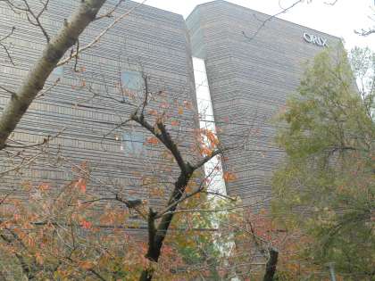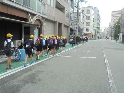 劇団四季ファミリーミュージカル「ガンバの大冒険」を鑑賞します。(写真左)学校を出発し、地下鉄大国町駅へ向かいます。(写真右)オリックス劇場に到着しました。総数2,400席の本格的な劇場・コンサートホールです。