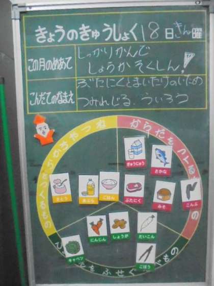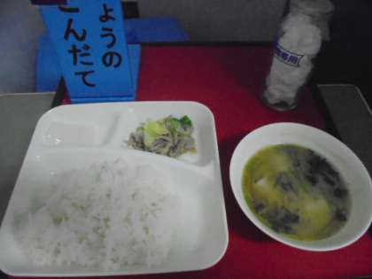 今日の献立は、豚肉とまいたけのいためもの、つみれ汁、ういろう、ごはん、牛乳です。