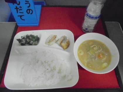 今日の献立は、赤魚のしょうゆだれかけ、みそ汁、おおさかしろなのごまあえ、ごはん、牛乳です。