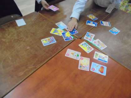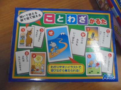 1年生の教室から、歓声が聞こえてきました。入ってみると、1組と2組の子どもたちがグループになって、「ことわざカルタ」をしていました。読む子どもと絵札を取る子どもたちで、大盛り上がり!
