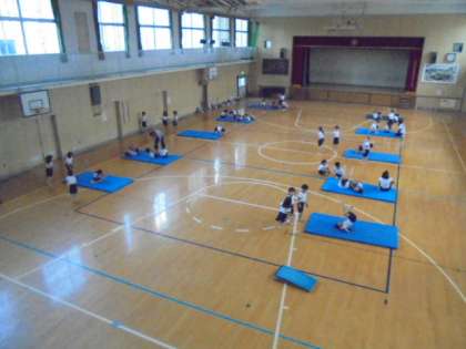 マットを使って、いろいろな運動遊びに親しんでいます。かわいらしい動きですね。