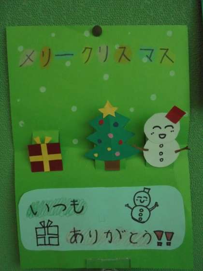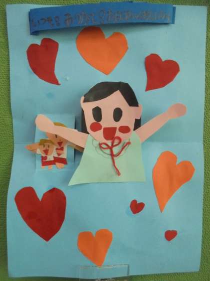 飛び出すカードを作りました。優しい気もちがこもっていますね。