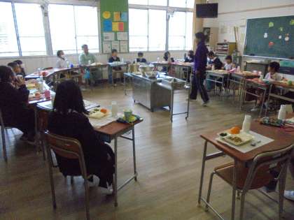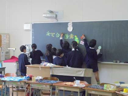 今日は、楽しみしていた「たてわり給食」です。1年生から6年生までのたてわりグループで、仲良く給食を食べたり、ゲームをしたりしました。そうじも、たてわりでしました。
