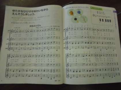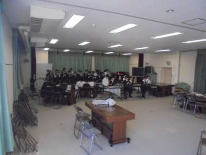音楽室で、4年生全員が「茶いろの小びん」を合奏しています。演奏している子どもたちの表情が、とてもにこやかでした。
