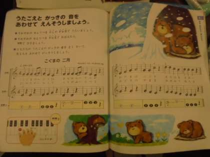 音楽室から、「こぐまの二月」という曲が流れてきました。熊さんのイラストが、かわいいですね。
