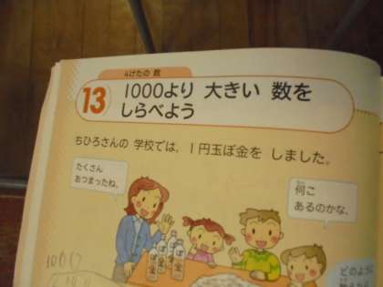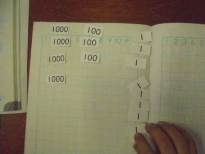 「1000より大きい数を調べよう」の単元を学習しています。わかりやすいよう、数字のカードを使って、調べています。