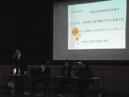 昨日、浪速区の先生方が一堂に集まって研究発表会を行いました。塩草立葉小学校の先生方が、算数科の研究発表をしました。参加された他校の先生方や教育指導員の方から、素晴らしい発表だったとおっしゃっていただきました。ありがとうございました。