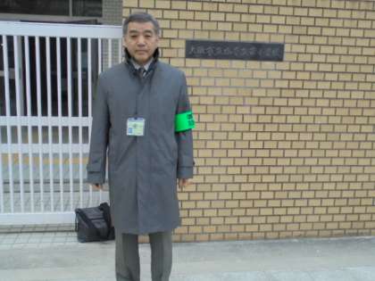 スクールサポーターの豊田 喜一郎様(元警察OB)が来校され、朝の見守りをしてくださいました。子どもたちの安全のため、ありがとうございました。