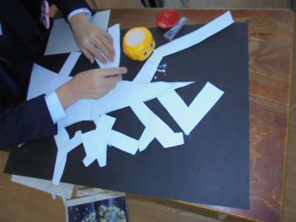 国語の教科書に載っている「モチモチの木」(児童文学作家 斎藤 隆介作)を紙版画に表しています。迫力のある木ができそうですね。