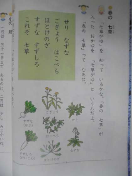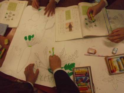 国語科の教科書に「春の七草」が載っています。グループで協力しあい、絵で表しています。本物そっくりです!