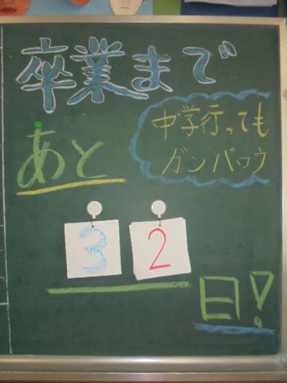 教室の後ろの黒板に、卒業までのカウントダウンが書かれていました。これからも、一日一日を大切に過ごしてください!