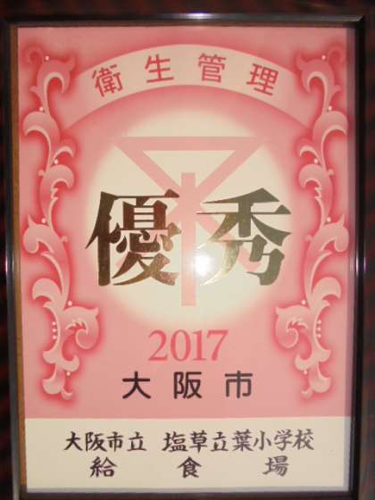 本校の給食室に対して、大阪市より「環境衛生・食品衛生関係施設優秀標」が贈呈されました。日ごろ、安全でおいしい給食を提供してくださっていることが評価されました。来週の全校朝会の際、子どもたちの前で給食調理員の野村さん、水元さんにお渡ししたいと思います。おめでとうございます!