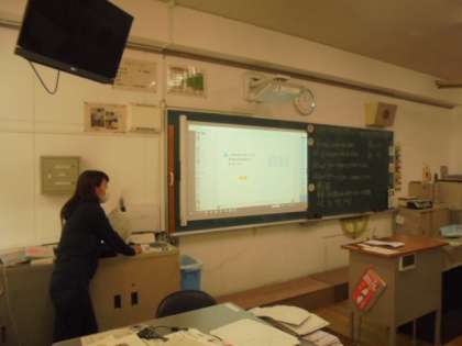 1より大きい分数の表し方を学習しています。デジタル教科書を使って、説明しています。