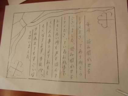 卒業プロジェクトの一環で、見守り隊の皆さんやリードさんたちに感謝のことばを書いています。3学期も、ありがとうの気もちを大切にしています。