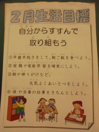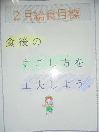 2月の生活目標、保健目標、給食目標です。
