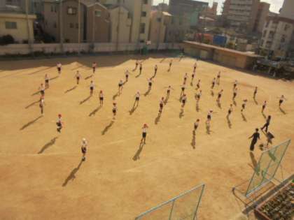 6年生の体育は、運動場で縄跳びです。さすが、最高学年。かっこいい!