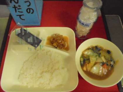 今日の献立は、あげどりのねぎだれかけ、あつあげとはくさいの中華煮、焼きのり、ごはん、牛乳です。から揚げにねぎだれをかけたおかずが、大好評でした。