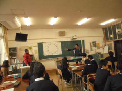 今日は、難波中学校から4名の先生方がお越しくださり、6年生へ算数の授業をしてくださいました。御堂筋線やJR環状線の路線図やトランプを使って、プラスとマイナスについてわかりやすく説明していただきました。6年生は、はじめは緊張していた様子ですが、難波中学校の先生方の温かい雰囲気にすっかりリラックス。難波中学校に、親しみを持ったようです。先生方、ありがとうございました!!
