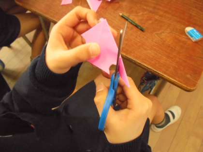 卒業お岩集会のかざりつけを作っています。見事な出来栄えですね。