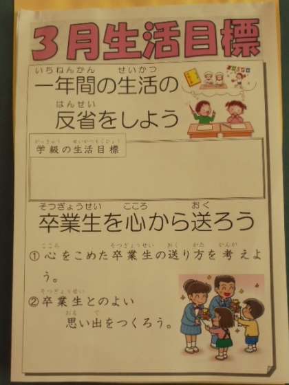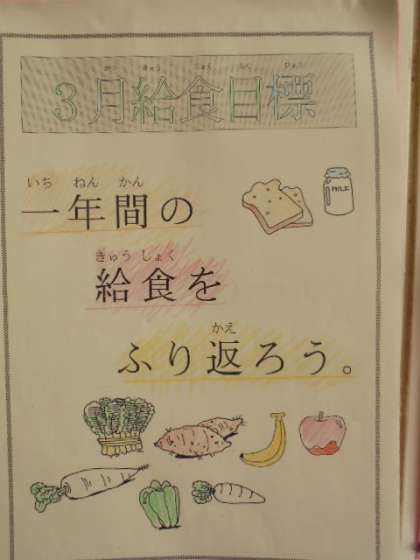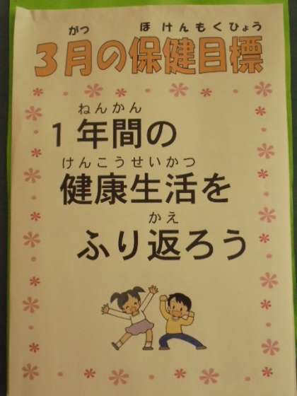 今月の生活目標と保健目標、給食目標です。