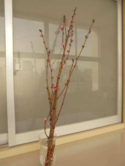 ある先生が、つぼみのついた梅の枝を水差しに入れて飾ってくださっています。季節感があって、心が和みます。