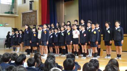 6年生が、嵐の楽曲「ふるさと」(作詞:小山 薫堂)を披露してくれました。心にしみこむ歌の響き、感動をありがとう。
