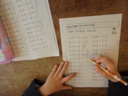 ひきざんの計算問題をがんばっています。もうすぐ、2年生ですね。