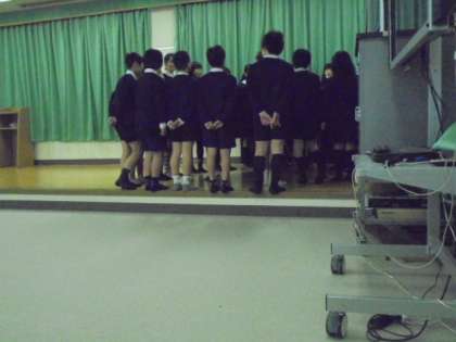 卒業式に向けて、全員で発声練習です。先生のピアノに合わせて、「お口のたいそう、あえいおう〜♪♪」とても楽しそうです。