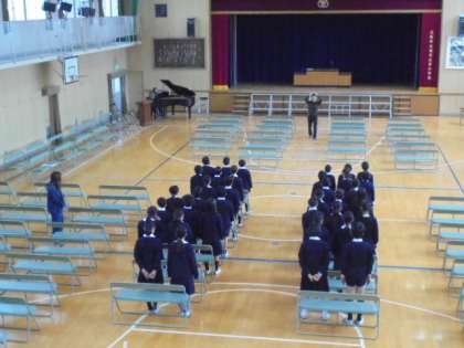 卒業式の練習です。先生から、OKサインが出ました!!