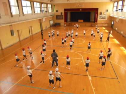 体育館から、子どもたちの歓声が響いています。ドッジボール大会です。