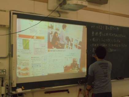 家庭科の学習です。身の回りの整理・整とんを学んでいます。