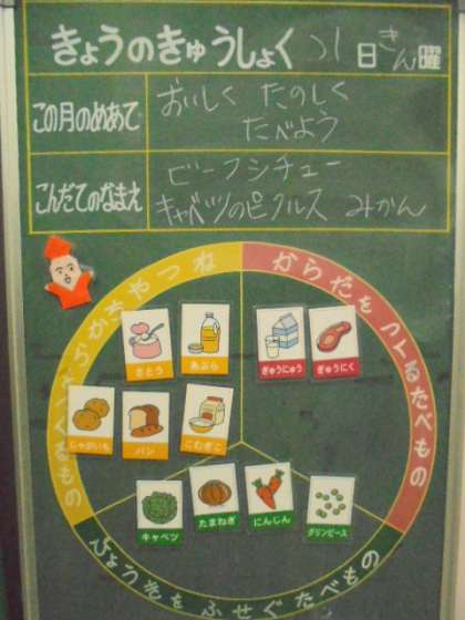 今日の献立は、ビーフシチュー、キャベツのピクルス、みかん(缶)、パン、牛乳です。「ラッキーにんじん」が入っていました!給食調理員さん、ありがとうございます!