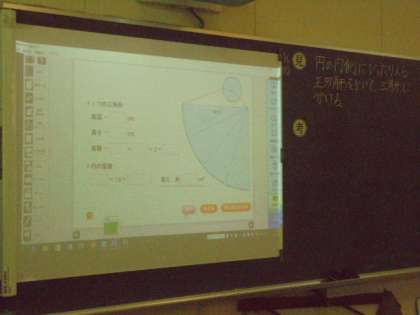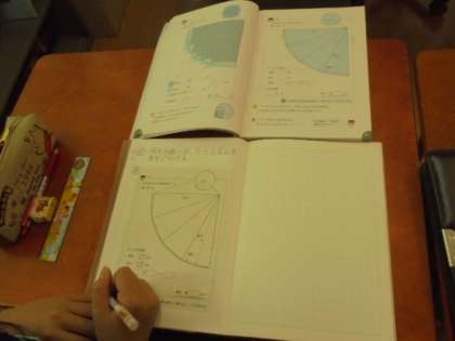 (上)国語で、イースター島について学習しています。さすが6年生、グローバルな環境問題を考えています。(中・下)算数で、円の内側にぴったり入る正多角形をかいて、三角形に分ける学習をしています。ここでも、デジタル教科書が活躍しています。