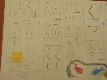 こくごのべんきょうで、ひらがなを学習しています。上手に書いていますね。