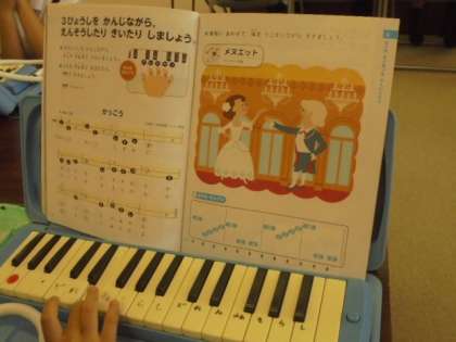 「かっこう」の曲を鍵盤ハーモニカで演奏しています。
