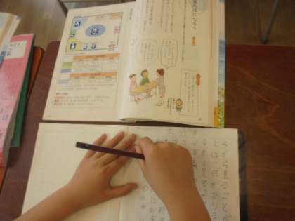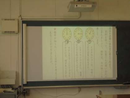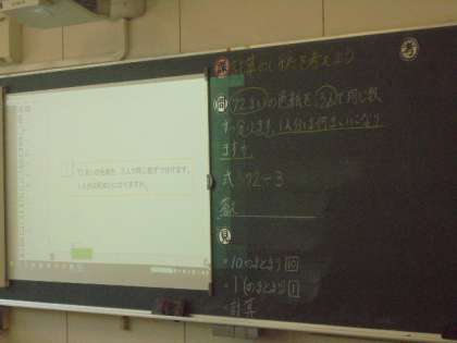 (上・中)国語の学習です。(下)算数です。どちらも、担任の先生が電子黒板を使って、わかりやすく説明しています。