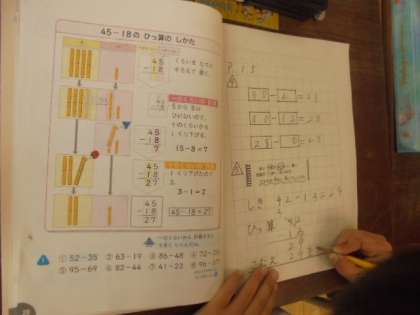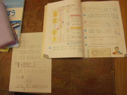 算数のひっ算の学習です。ノートにわかりやすくまとめていますね。