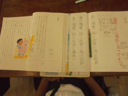 国語で、教科書の「場面ごとに見出しをつけよう」を学習しています。