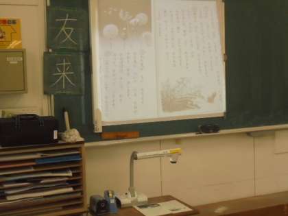 国語の教科書で、「たんぽぽ」を学習しています。先生は、書画カメラを使って、わかりやすく説明しています。