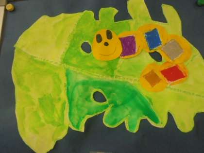 「オシャレな いもむし」楽しい作品が並んでいます。