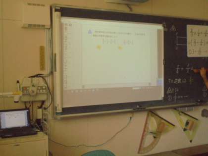 算数で、数直線を使って考える問題です。デジタル教科書を活用しています。