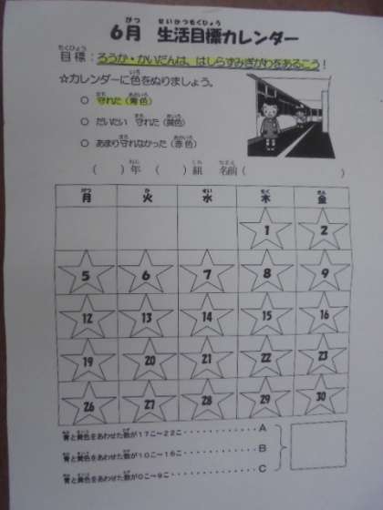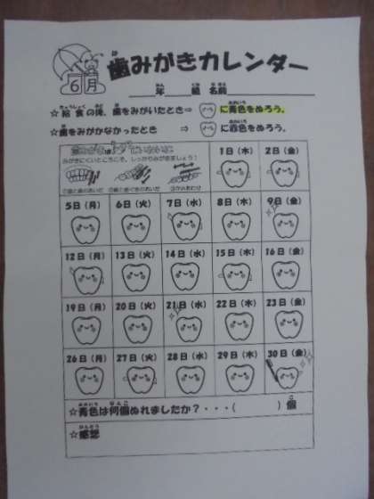6月5日 歯みがきカレンダー、生活目標カレンダー